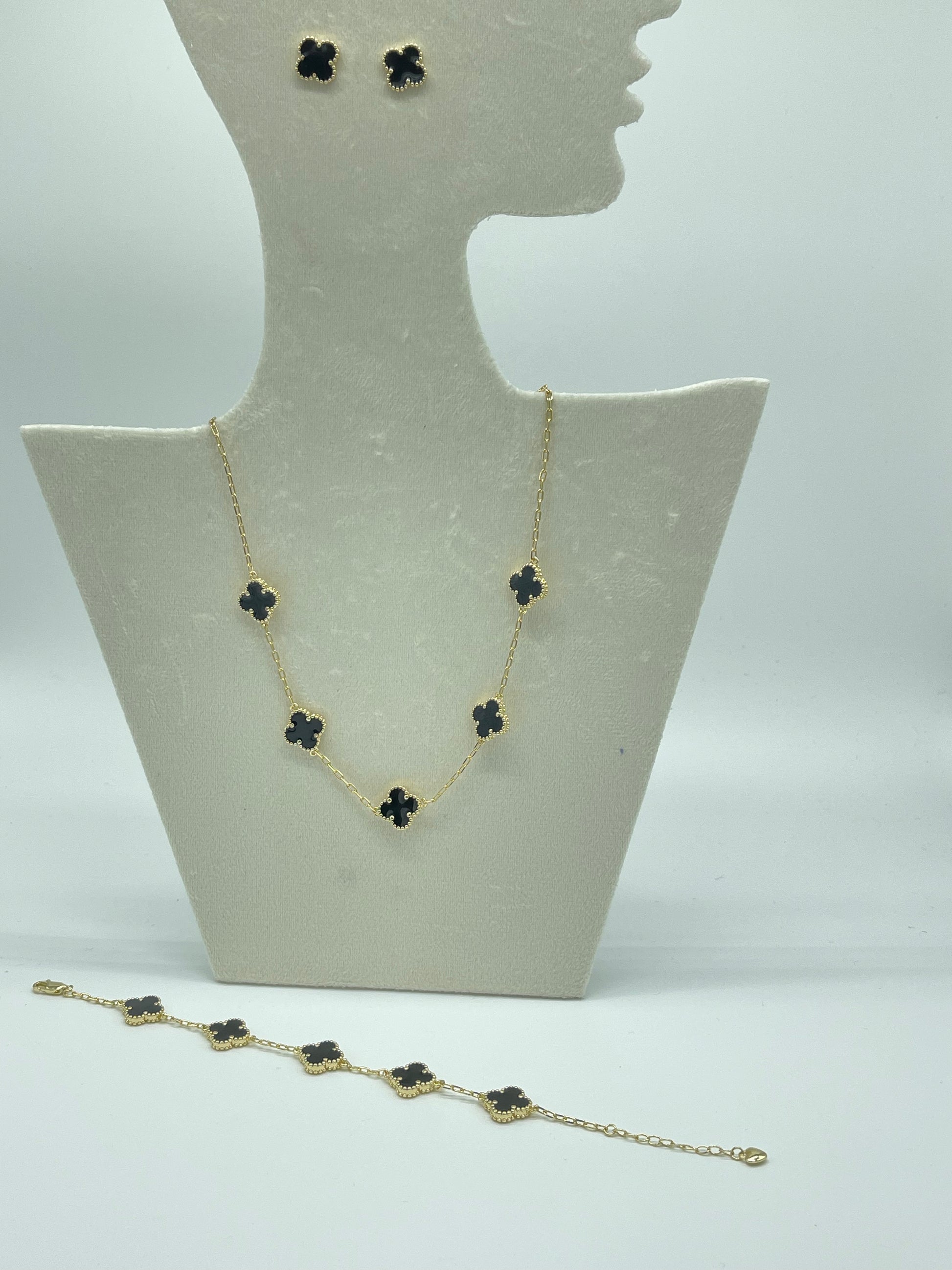 This is a 5 clover 3 piece set that includes: earrings, necklace and bracelet