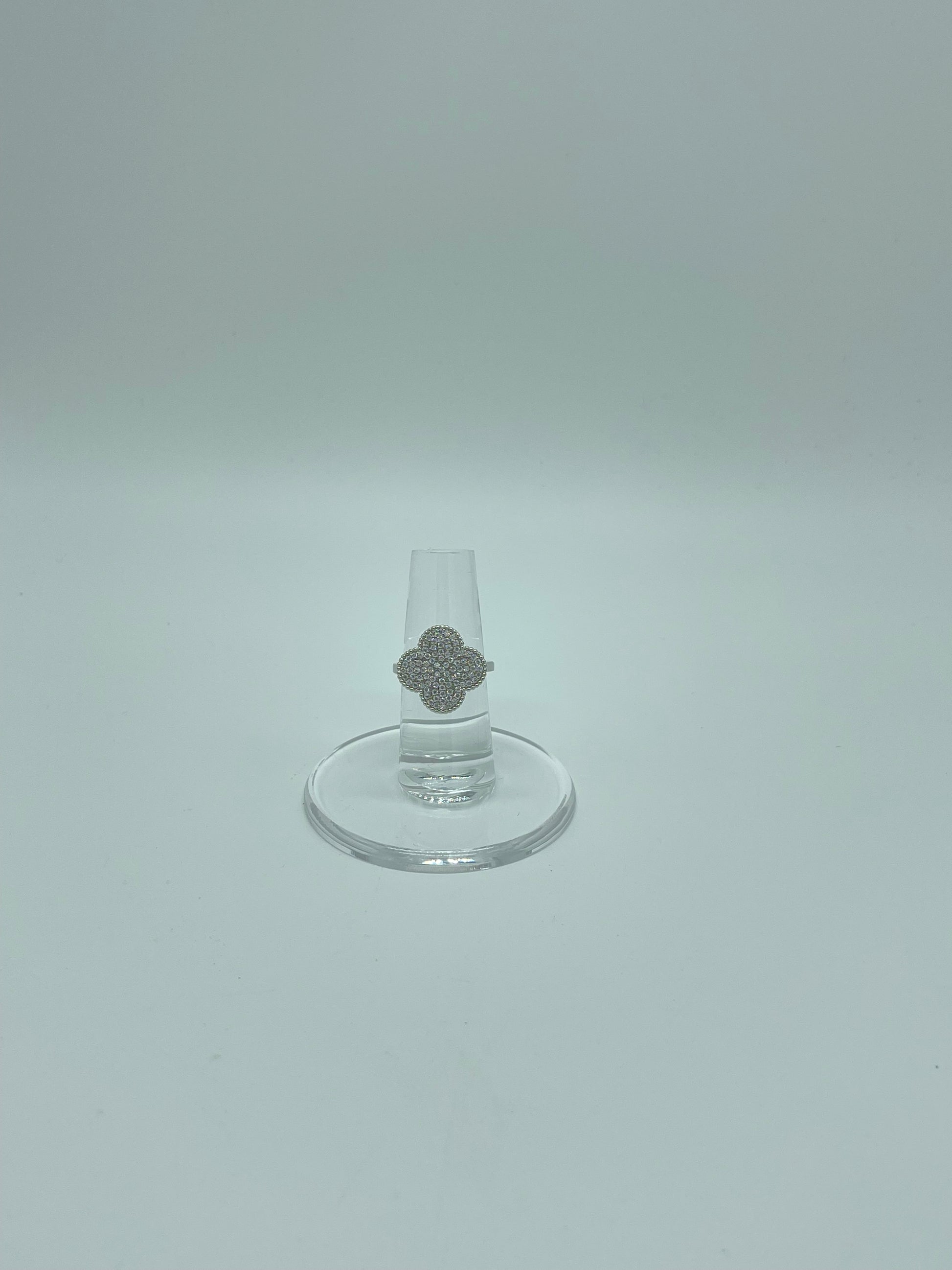 Silver Rhinestones Clover Ring